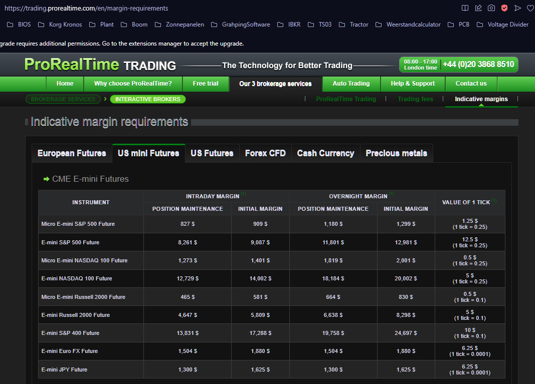 Please tell us what you precisely mean by 35.000 “cost” for micro e-mini nasdaq. The only thing which comes into my mind is that you possibly mean contract’s “value” – which is Nasdaq-level multiplied by point-value, which is currently with index flying at around 17.500 and 2 USD per point value in fact around 35k USD.Precisely that. Each of my Futures charts shows the value (cost of one contract) in capitals and in real time (rounded at 1000, see 1st picture), so that I know what I am actually buying/selling when I like the figure 7 (for example). It would mean 245K in this case. If I apparently don’t know how it works, just tell me – I am not the teacher. The Live example I am seeing – and we all know the figures by now (only the gains are still hidden) is 11x35K for the MNQ in that, remember, “smaller” account. This gives 385K. This means my portfolio in there should be 38,5K when the Margin would be 10%. This is there, so no worries for me yet. Would I apply the literal figure IBKR currently presents, it would be (6,25%) 24K what my portfolio should carry at this moment. This is of course also there. But as we know it is a bit more complex, because I (currently) trade 2 Future Instruments in there – also the MES. Now, see the 2nd picture : The last time both were in at the same time was Jan 24, 14:04:02. MES was at 30 contracts, MNQ coincidentally at 4 (see entry on 24 Jan. 09:21). This gives 30 x 25000 = 750000 and a Margin requirement of (~5% now, look in the 3rd attachment for the S&P500 Micro – justisan, you showed the same) = 37500 plus 4 x 35000 = 140000 and a Margin requirement of (still using 6,25%) = 8750. Total for Margin requirement = 37500 + 8750 = 46250. This is again sufficiently there and again no worries; I know – and we can see that the reality is even much better because the MES looks to be ~ 4,8% (~1200 on ~25000) and for MNQ it is ~4% (~1800 on ~35000). Hocus-pocus and again it has become a confusing post; Think of IB being able to turn the <5% into 10% easily and it is good to commonly calculate with 10%. Now you can loose some as well. Small correction of what I told in a previous post : it is IB who rejects the order which crosses the threshold. PRT just passes that on to you via ProOrder and throwing out your system. At ProRealTime they currently can’t tell what will actually happen when IB throws out 1 contract after you’re in and lose a bit too much in order to still comply to the Margin rules. This is really how IB does it, trust me. Probably something will go bad again because Pro-Order won’t understand (and my program code most certainly won’t). Usually I am the first to know – haha. Peter