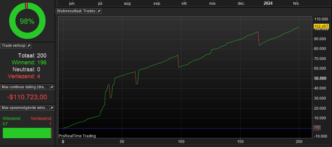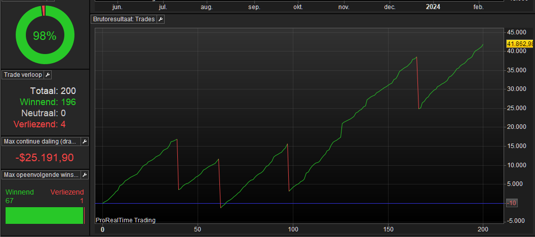 You are absolutely right – one is in very much better situation when one can afford to trade several more, but what if I can afford really only 1 contract in the very beginning?Sadly for myself I got used to not being disturbed about the initial contract amount ($ size). This implies that I am used to sheer infinite growth in backtests. I don’t even dare to show pictures of that, because they are completely ridiculous. And so my problem : All which grows by normal nature, like having a linear amount of position/$, will never grow as fast as I can do manually. And I don’t like that prospectus; a. manual trading is a kind of sad as a hobby (not for a living, I suppose) and b. I like the conquering aspect of getting this money just because I can write a bit of software. But really, try to make some serious $ with AutoTrading and beat the Buy and Hold which is even far less than manual trading (me thinks). If you look at the current situation over here then Buy and Hold would work out superbly – actively manual trading probably much better again, but the autotrading gains twice what the Buy and Hold at this moment does. And I am not even taken into account the huge DD for Buy and Hold from last week. So just this week and beat that. Now incorporate my last post. This post actually tells again that you can work with money you don’t have. BUT make the trades win !!! Yes PeterSt, sure … So there is this other secret : For many years I worked towards autotrading, and the more money I would have in the base, the more AutoTrading would gain. So logical … But not the past 18 or so months. I changed all, to begin with almost nothing and end with very much. This is my first post of the last two. A little rephrased now : “Begin with almost nothing for the purpose“. If it won’t work, I will blow up those accounts to the hell-side. I would care, but I would also know how not to do it.