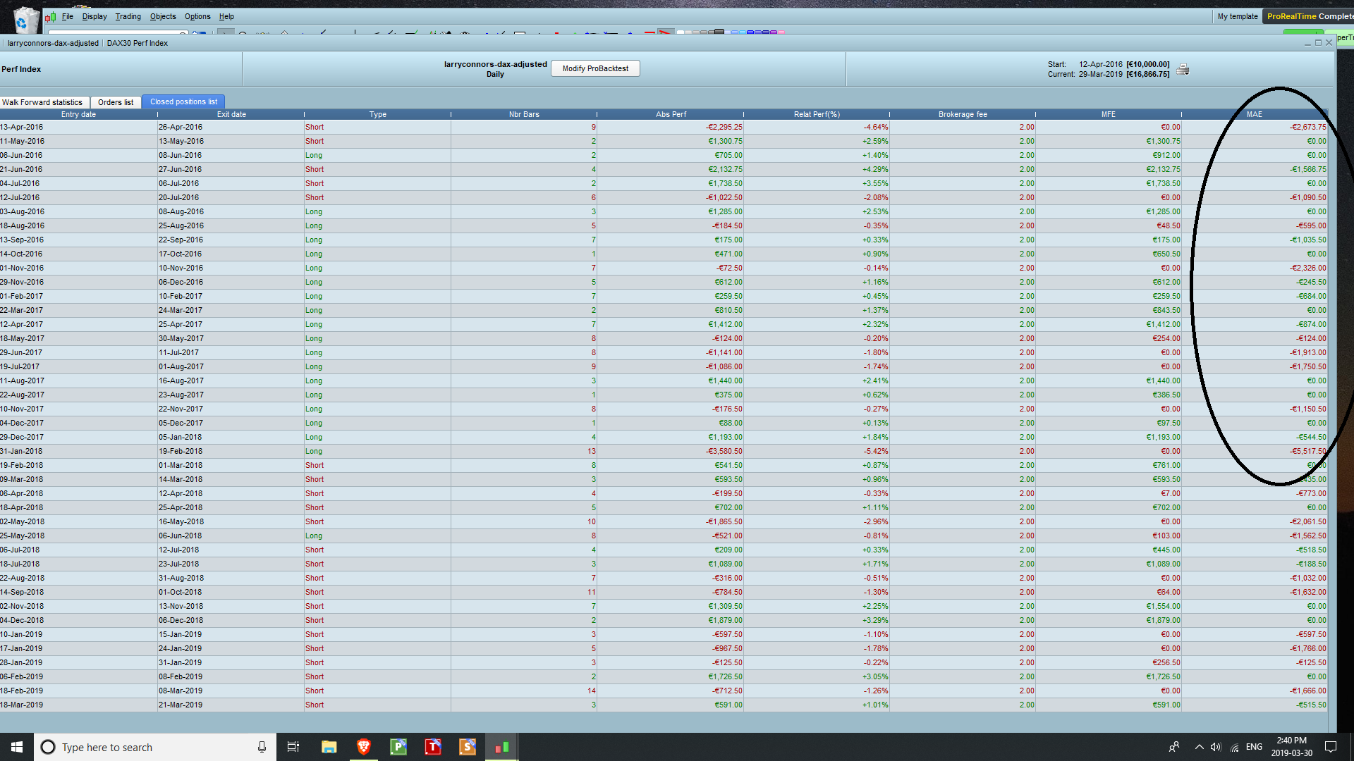 For a complete analysis, you can also randomize results between MFE and MAE for each order and re-scramble them, add more or less %win/loss ratio, and even change the normal distribution of them by adding more orders ‘away’ from the mean (+/- 2 or 3 standard deviation, to simulate unexpected trades due to abnormal situation).
