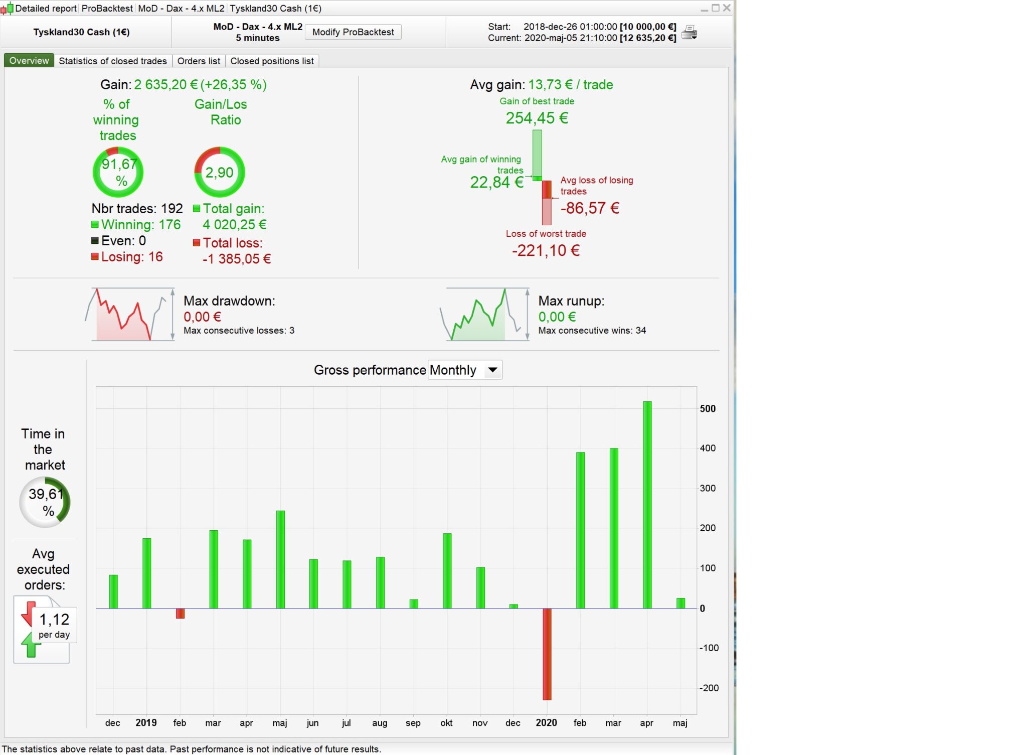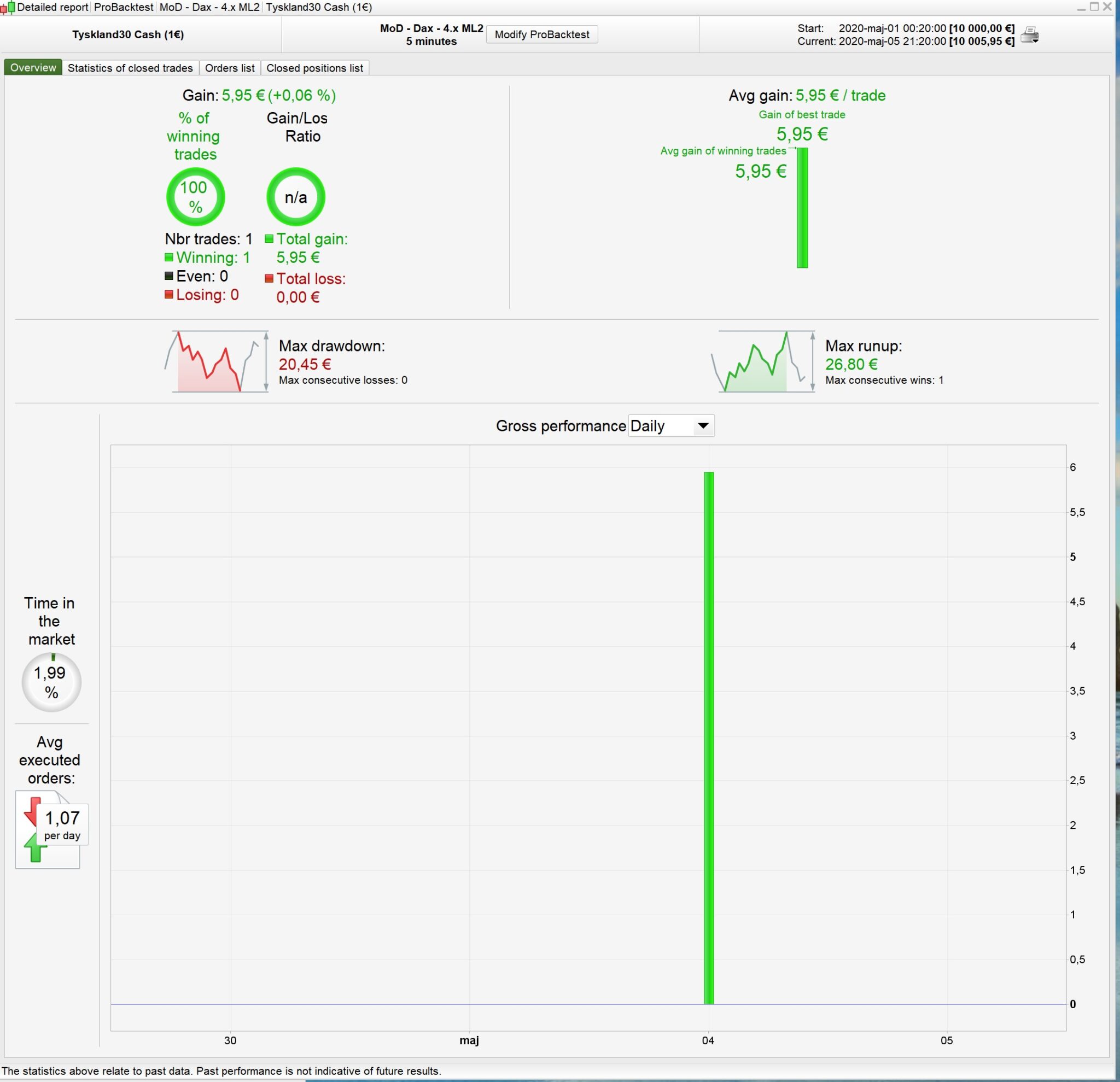 I don’t know why your results are different. I’m using the exact same .itf as I posted and in the backtest run just now I get the attached results. Today the bot made 1 trade with a modest £11.90 profit in demo forward testing. What are your timesettings in PRT?