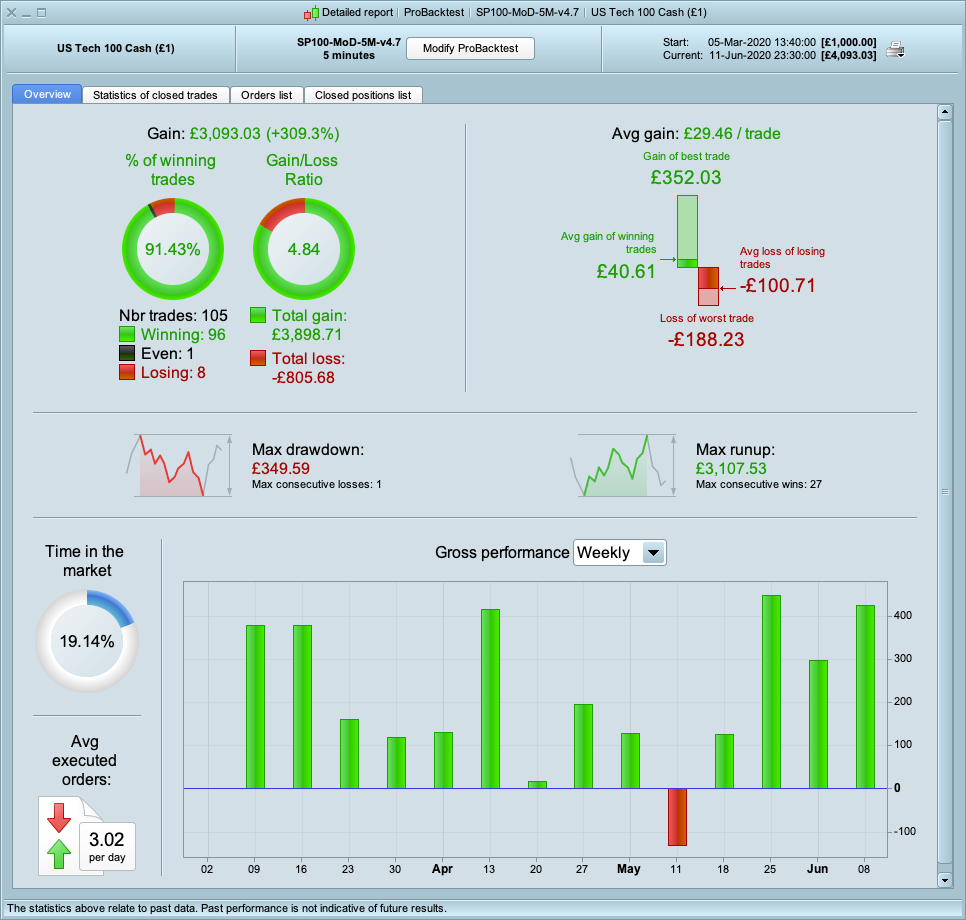 Here is the strategy optimised for SP100.