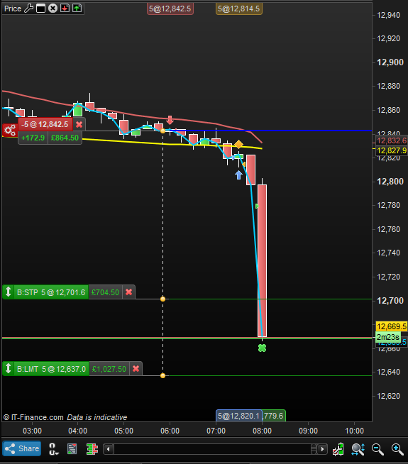 The strategy went short this morning, 28th July, with an initial stop loss of -£1,035 and a target profit of +£1,035. Once the trade moved into profit the SL snapped to below entry price – all good. Looking at the code it’s not clear to me exactly where this is managed (apologies, I am not a coding expert). I ask because I’d like to test different settings as I believe that it may be possible to improve the win ratio slightly by having a slightly tighter trailing stop loss.