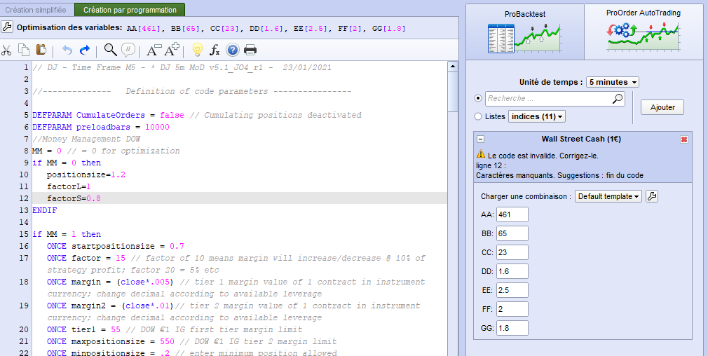 I worked on the DJ 5 min MOD v5.1 in Long only. I optimize most part of paramters and reduce quantity of timeframe.
