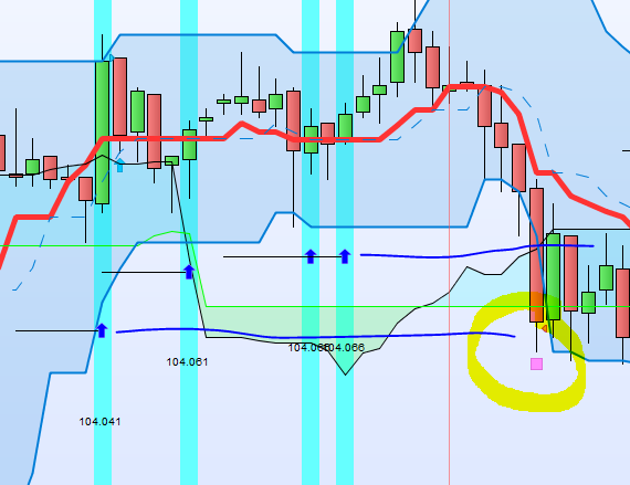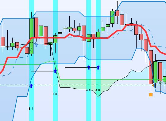 LongEntry is the event with lime green background color and the first one is my buy position with a 9.1 pips stop loss. As you can see, there will be multiple events of LongEntry, and each one there’s a corresponding “LongSL” drawn with a segment and pips measure (i.e. 4.8, 4.4 and 4.8.