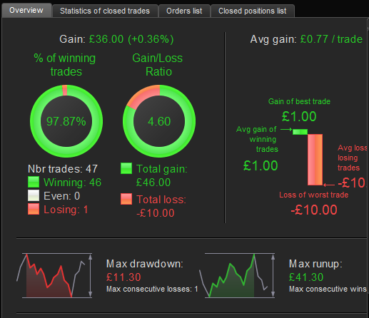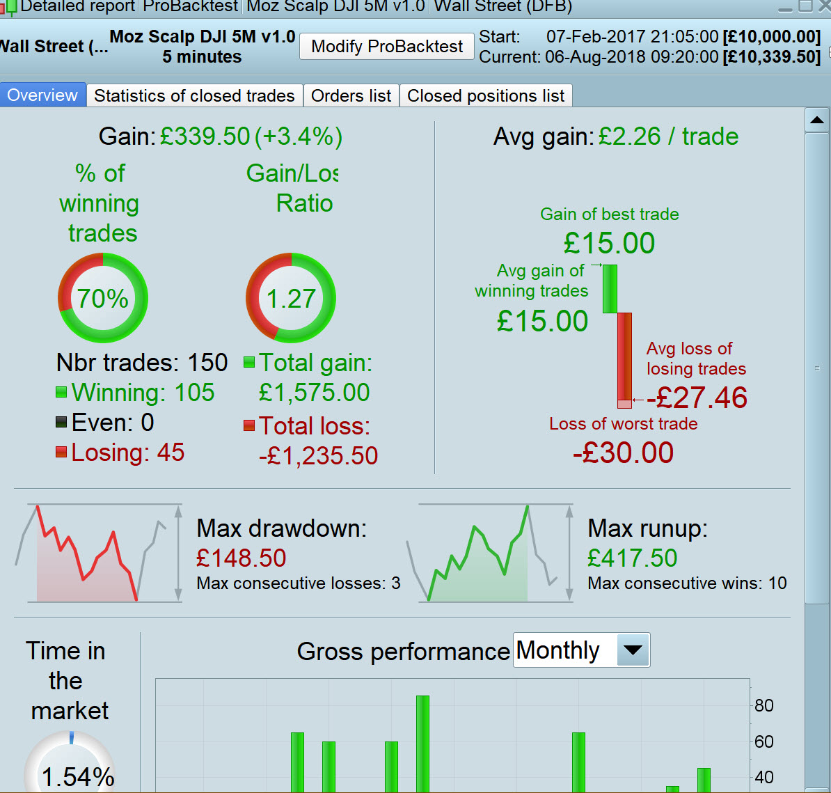 Thank you for sharing @Thomas007 … I get attached with code below (I changed TP and SL) on DJI 5M TF with spread = 2 over 100k bars