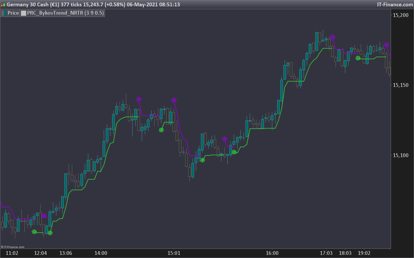 Ho finalmente trovato il tempo per convertire questo indicatore, puoi scaricarlo qui: BykovTrend_NRTR