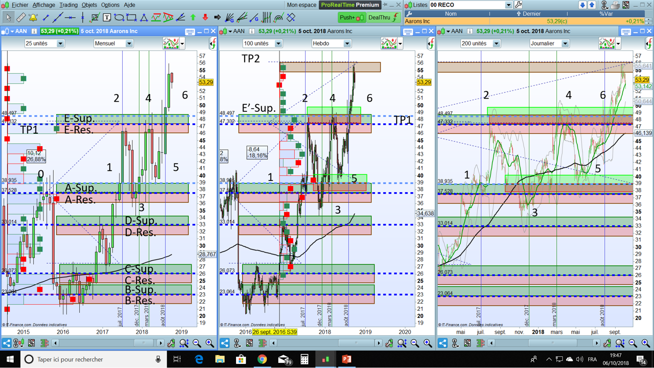 - the system waits for a confirmation reversal = close crosses under the montly resistance E-Res (here 46)