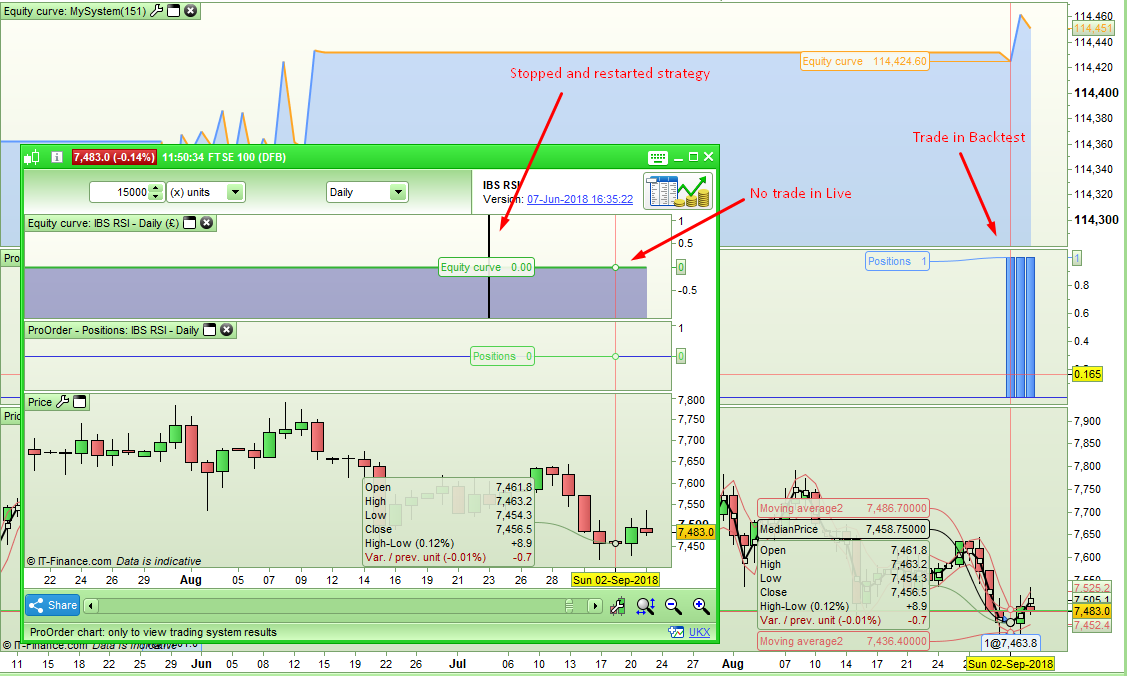 I noticed that the number of demo trades that my platforms have opened recently is very low so I just checked another of my strategies that usually opens a lot of trades and found that it failed to open three positions on live trading that were opened in the back test. I think two of them are not there because IG deleted the wrong trades when I got them to delete two non closable orphaned trades last week but the last position should have opened and didn’t.