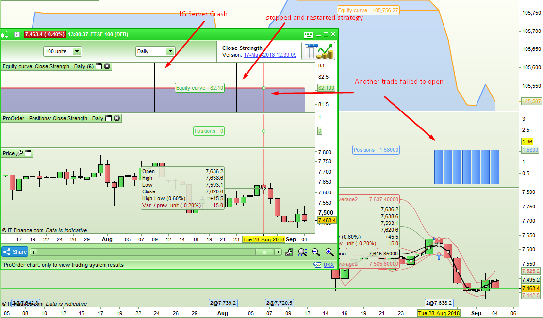 It has been a terrible few weeks for gathering forward testing data – strategies stopped that had open positions due to the IG server problem , then IG deleting two open positions of mine by mistake, then two strategies with orphaned trades not closing and now God knows how many strategies that have not opened trades since the 9th August when they should have done.