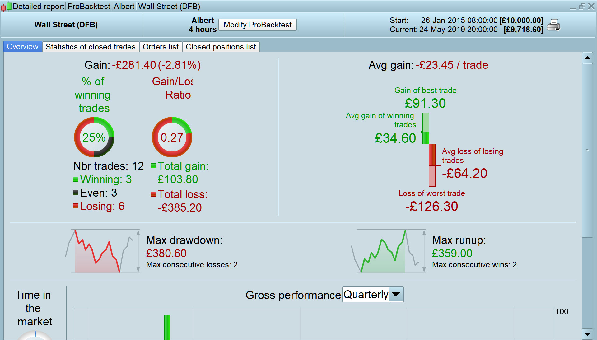 There is something very strange … the equity curve shows a profit, but the Detailed Report shows a loss.
