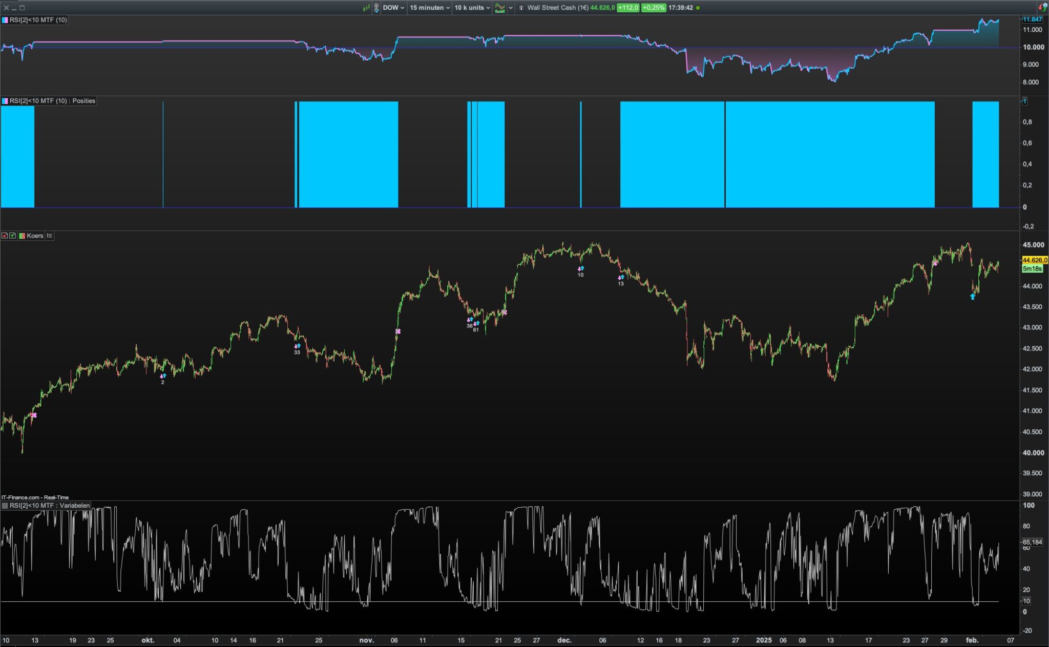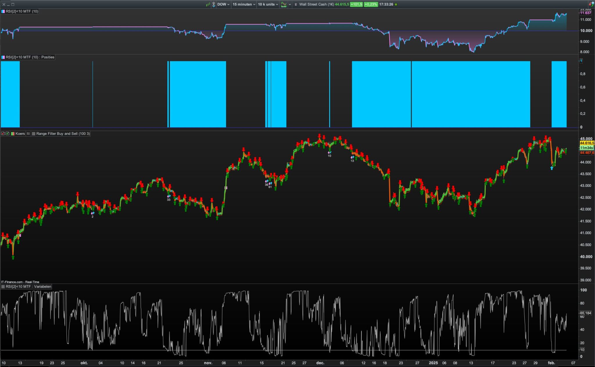 The last entry is at Open 3rd of February. Buy signal should be at Close 2rd of Februar. Exit is 3rd of February at 21445,6. I don’t understand. Isn not 2rd of February EntryDay, and High 21068,1? Therefore the exit signal should be at the first 15 minutes bar ending higher than 21068,1? What am I missing?