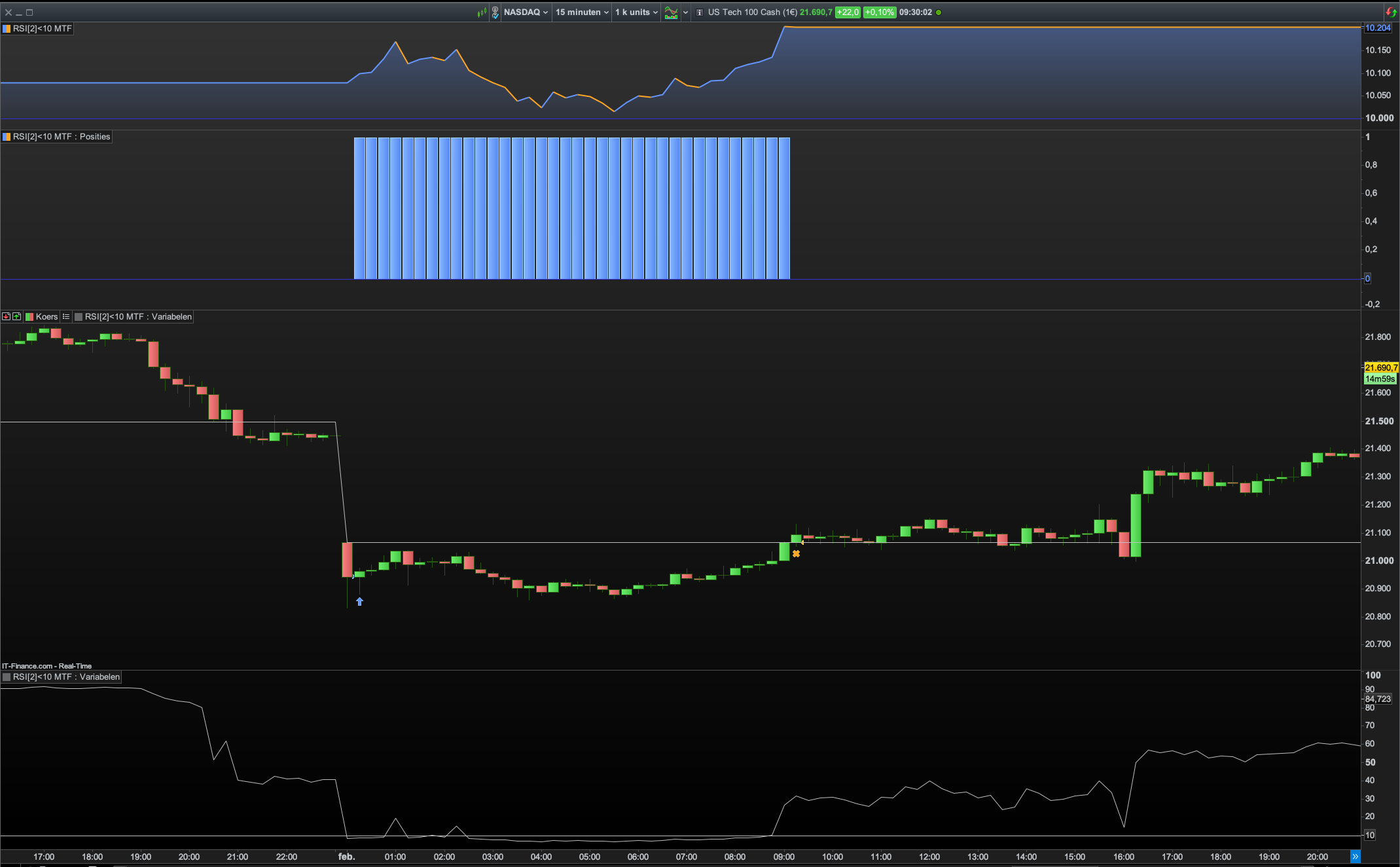 Thanks. Trying to clarify my question: EntryDayHigh is 21068,1. The first close is Level in the 15 min bar is at the bar starting 3rd of Feb at time 090000, but the actual xit is at 214456,6 at time 214500…How come the exiy is not at the bar starting 091500 (at open a the first bar after the sell signal)?
