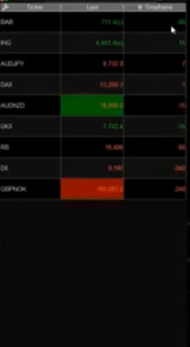 It basically has the numbers to represent the time frame within the same window that has triggered the signal on the right side column. ‘5’ for 5 min, ’15’ for 15 min, ’60’ for 60 min, ‘240’ for 4 hours, ‘1’ = 1 day and ‘7’ = 1 week. Also the numbers are either red or green for showing if buy or sell although this is less important to me.