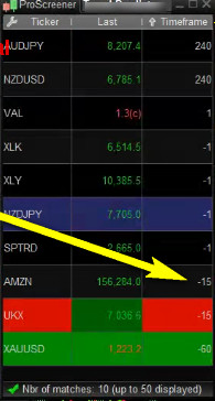 This is the multi timeframe Proscreener and it has Timeframe field to display the individual timframes and recognize them
