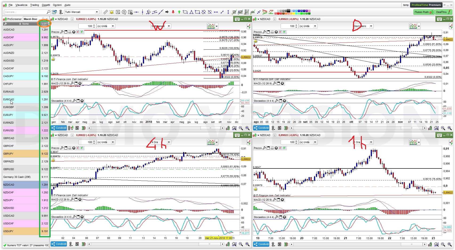 I just need them to display when they set up, but to show an individual setup on w, d, 4hr 1 hr ( and buy or sell if possible) all within the one screener window