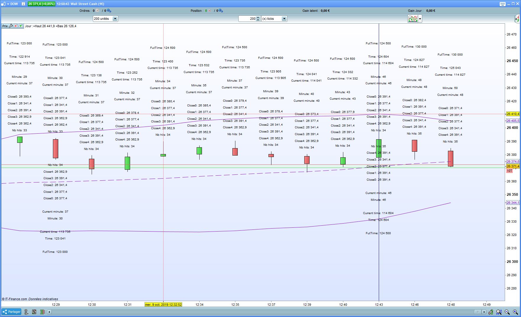 I would like to get values at specific times, let’s say each 15 minutes on a 200 ticks chatr on dow