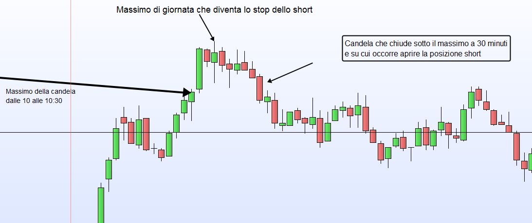 Vorrei specificare meglio: a 1 minuto il prezzo deve salire sopra il massimo a 30 e avere una candela che chiuda sopra; poi successivamente deve formarsi una candela che chiuda sotto il massimo in questione: solo allora aprirò una posizione short. Ad esempio se, per il caso di prima, avessi avuto alle 10:31 una candela che andava sopra il massimo e chiudeva sotto il massimo stesso nella stessa candela, non veniva presa in considerazione nessuna operazione.