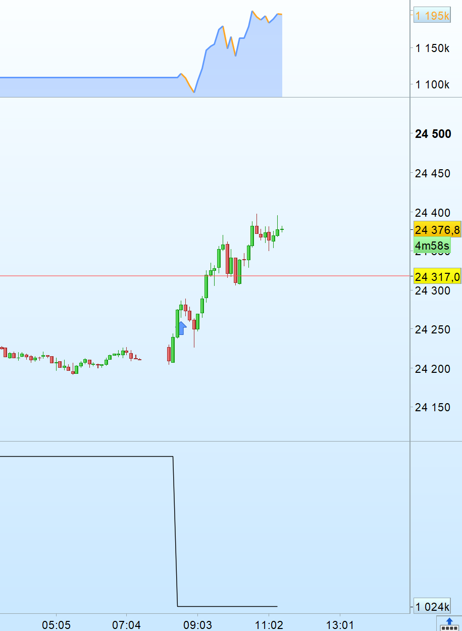 Today, the algo on DAX 7 min, 90k€ now… Looking how the trade will finish 🙂