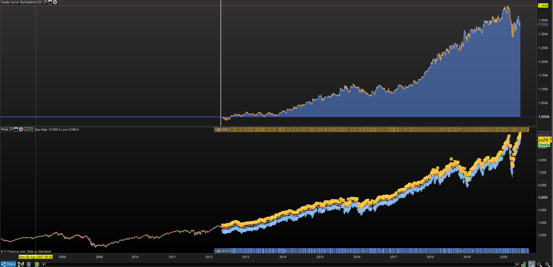 I was backtesting over the weekend on the DJI and DAX and all seemed good.