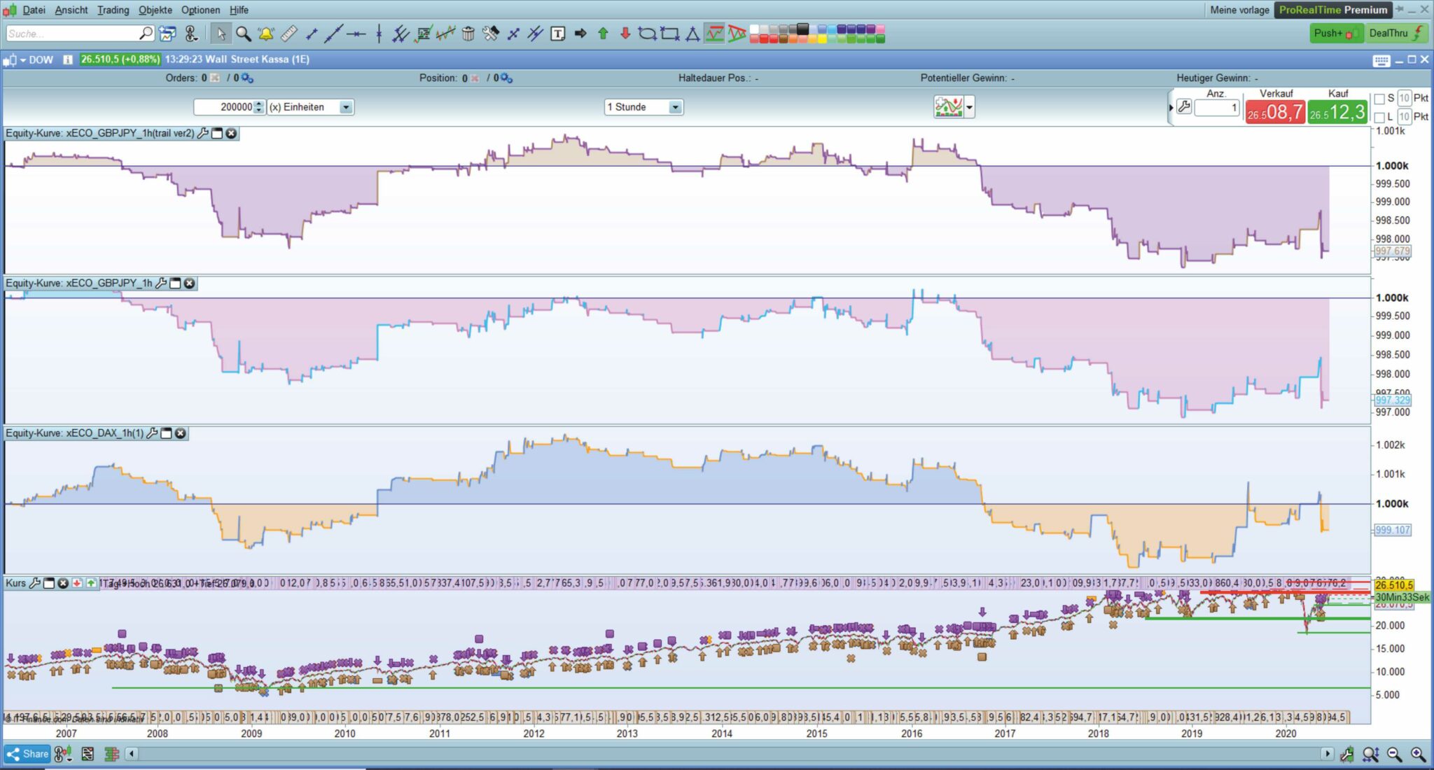 It still does not work for me. It is still random. Attached is two screenshots for the Dow showing the same 3 strategies (obviously not optimized for the Dow, but that’s another story) without changing the starting time (for each strategy set to start at the beginning of the shown chart). As you can see, in the 1st attempt, two of the three strategies randomly started much later, in the 2nd attempt it worked normally. It just keeps changing… not a very satisfactory situation!