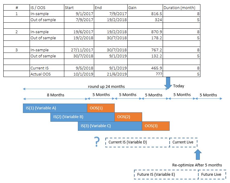 I read the WFA related Guideline / Post from this forum that we should use the most recent variable from WFA analysis (which is variable C). But this is contradict with my understanding of WFA result-> “In order to have a similar gain as shown in historical OOS (s), I should find the best performance variable from last 8 months of data (from today) and use it on the next 5 months. After 5 months, i must repeat this process.”