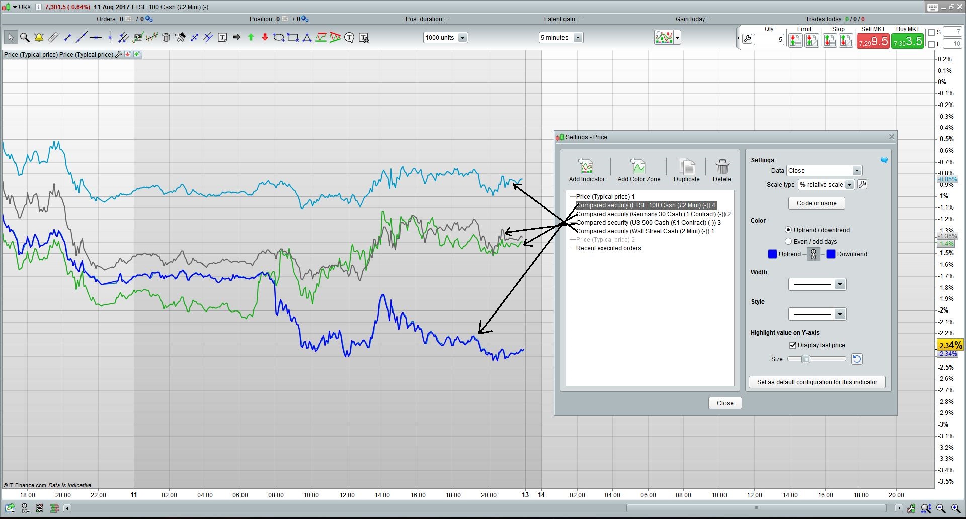 SELL – if FTSE crosses under DAX+DOW+NASDAQ