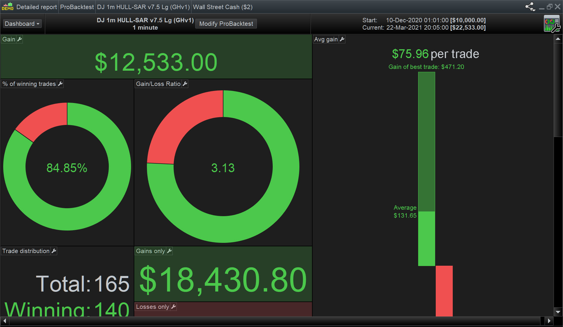 ONCE factor = f // factor of 10 means margin will increase/decrease @ 10% of strategy profit; factor 20 = 5% etc