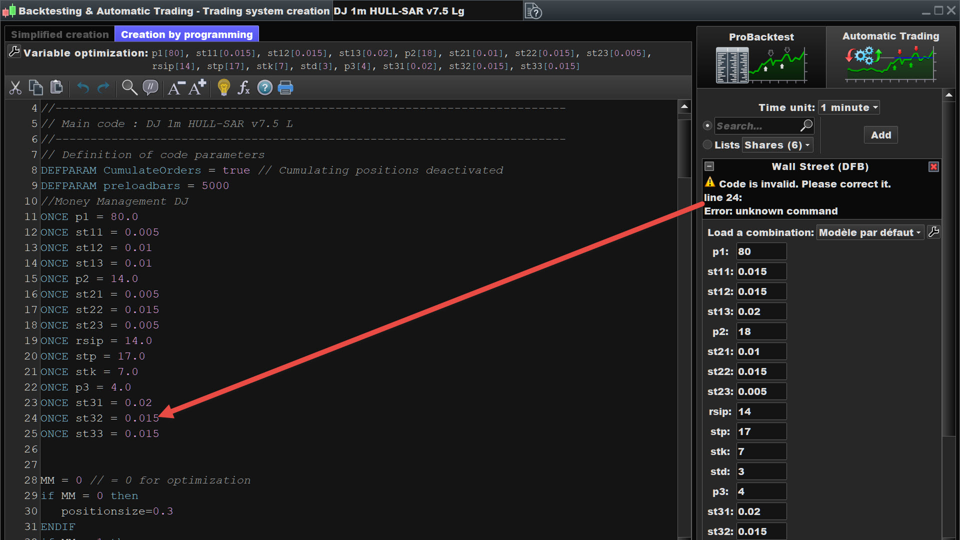 Hi. If you got one dj 1 min-algo woring. Pls post all code at once or itf-file