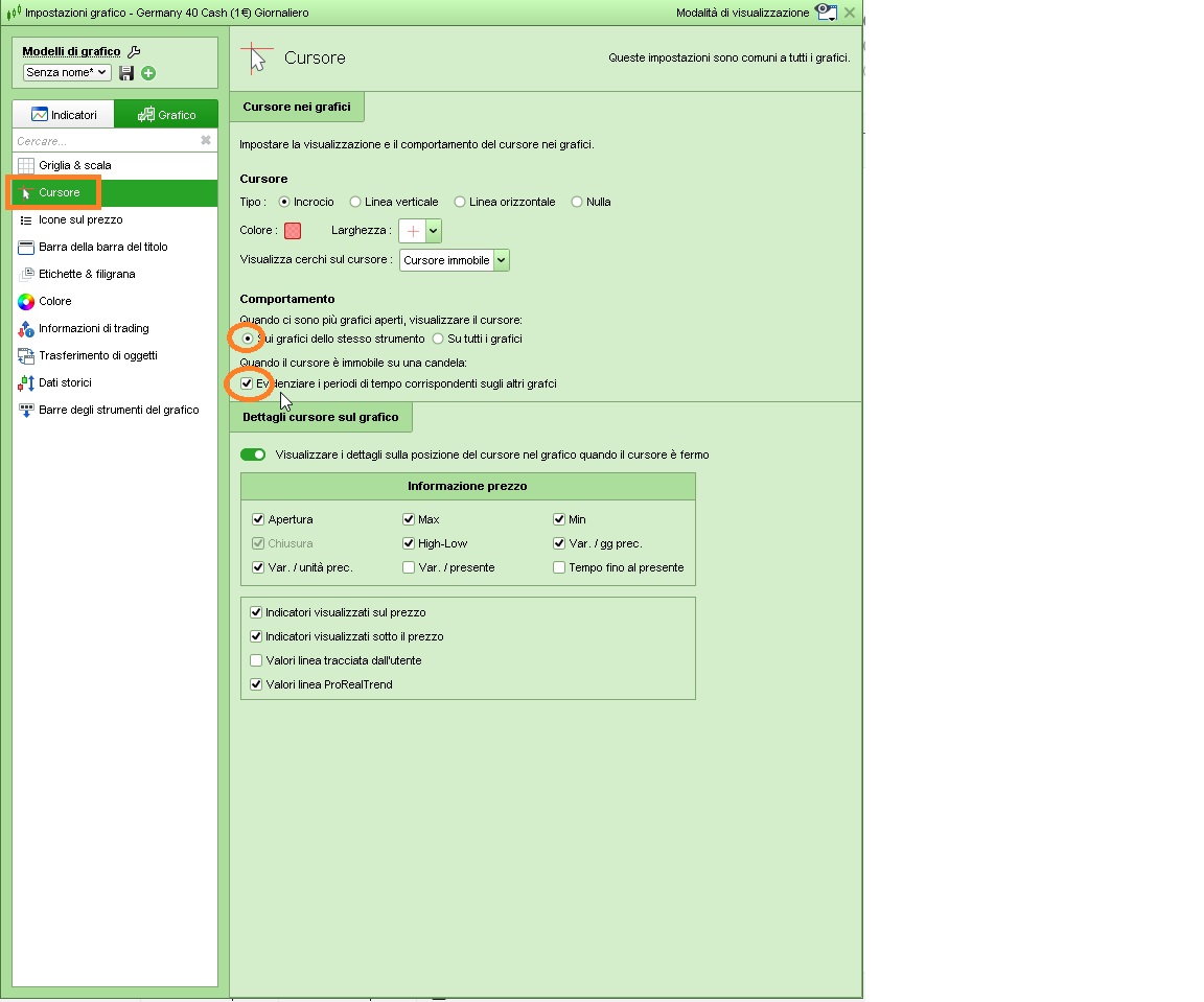Se ho ben capito, si, come puoi vedere nella mia foto, ho 3 grafici, Giornaliero, 1 ora e 1 minuto. Su qualunque di essi metto il mouse, vedo in tutti i 3 grafici a quale barra corrisponde.