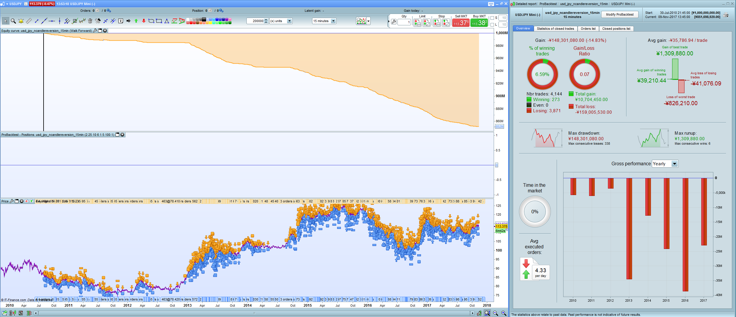 How many trades should i see on 100K backtest 15min USDJPY francesco? 🙂 atm i got 4144 trades, 273 win / 3871 loss — 4,33 pr day 😛 Obviously the filter is not working for me and im guessing it has to do with my USDJPY right now is 113.340 (One hundred and thirteen point three hundred and fourty)