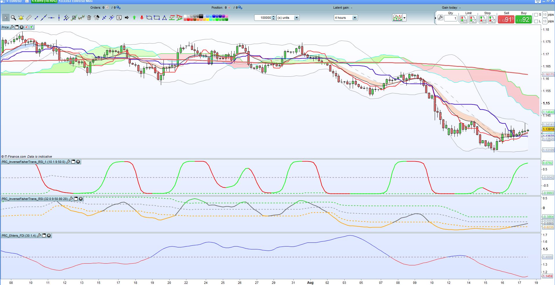 If close > MA200 and close > min(SA[26],SB[26]) and close < TS and close < KS and IFTRSI1 < IFTRSI1[1] and BollDown < lowest[50](close)[1] Then