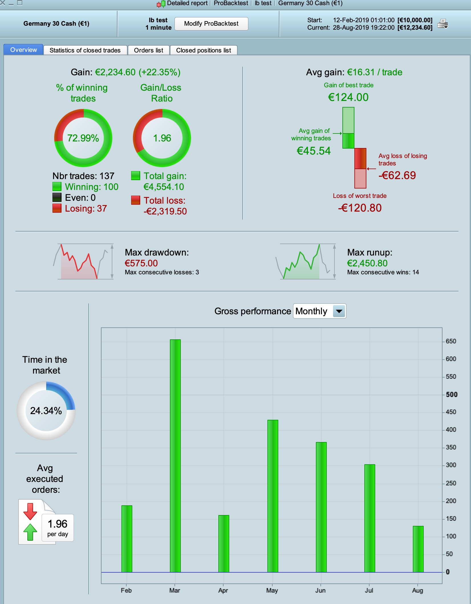 Tested on DAX30 1 minute.