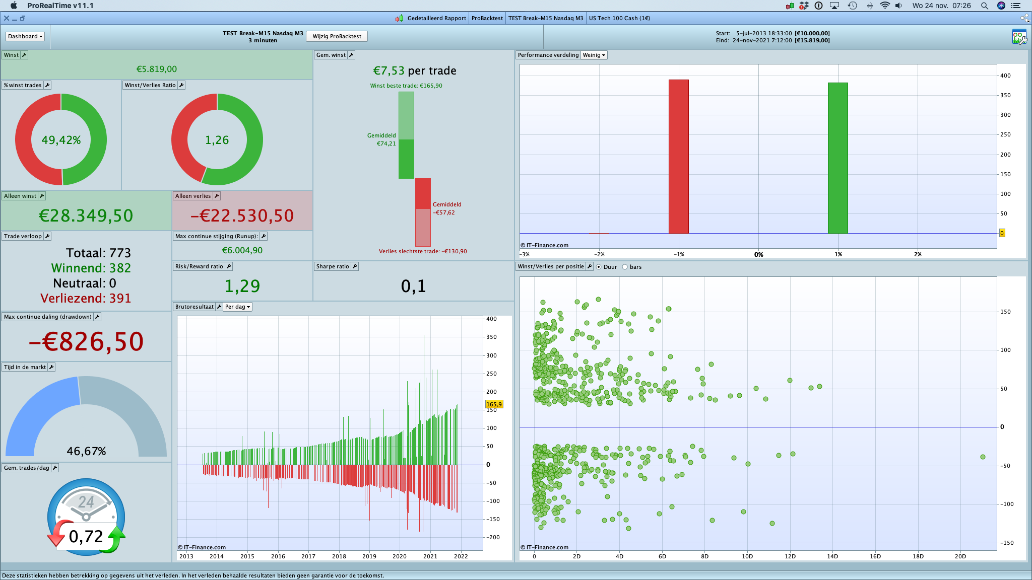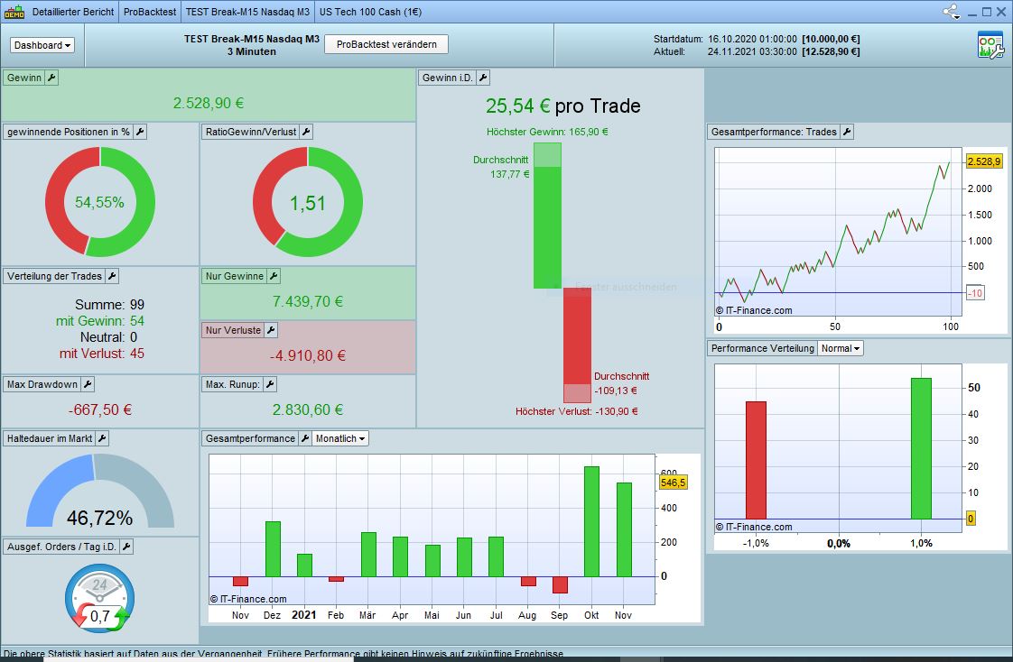 I’ve now written the logic of the system like my Break-H4 system. We are trending the breakout of highest (20) in the M15-TF. The close comes from the M3-TF. The logic works well in the long term if you switch to higher TFs.