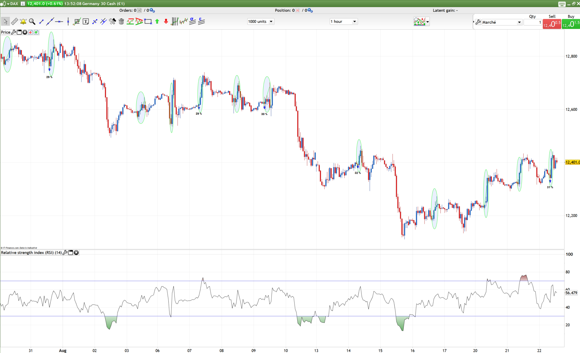 In this example, the “similarity” is a simple RSI[14] crossing over the level 50. If it has occurred at least 1 time (during ‘candlesback’) before the beginning of a setup, it scores 1 point. As for the attached picture, the similarity has been found 30% for all the setup (marked with a blue arrow).