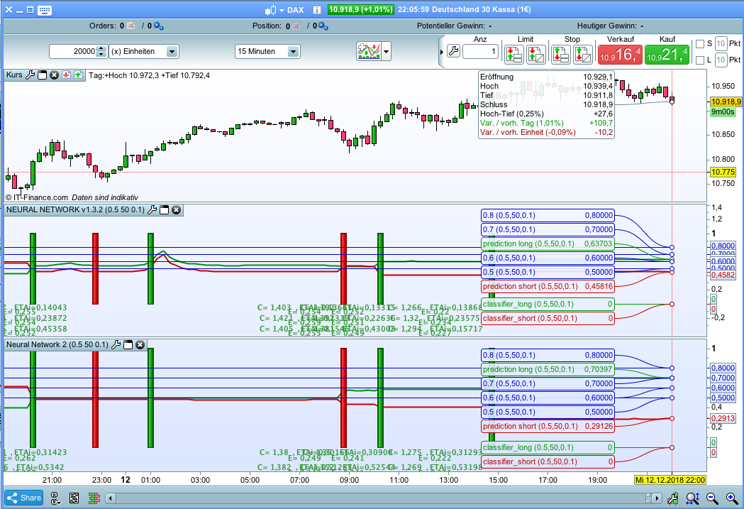 Sorry to keep asking for your explanation, and thx for your reply. As you can see in the image attached, the value of the lines “prediction short/long” are pretty different from one network to another, but as said the red/green signal of the classifier are always the same, for the whole historical dataset, be it 10,000 or 100,000. So I remain skeptic about the classifier…In the image attached, I have the lines prediction long and short that have a value of 0, but still have the classifier trigger to 1…