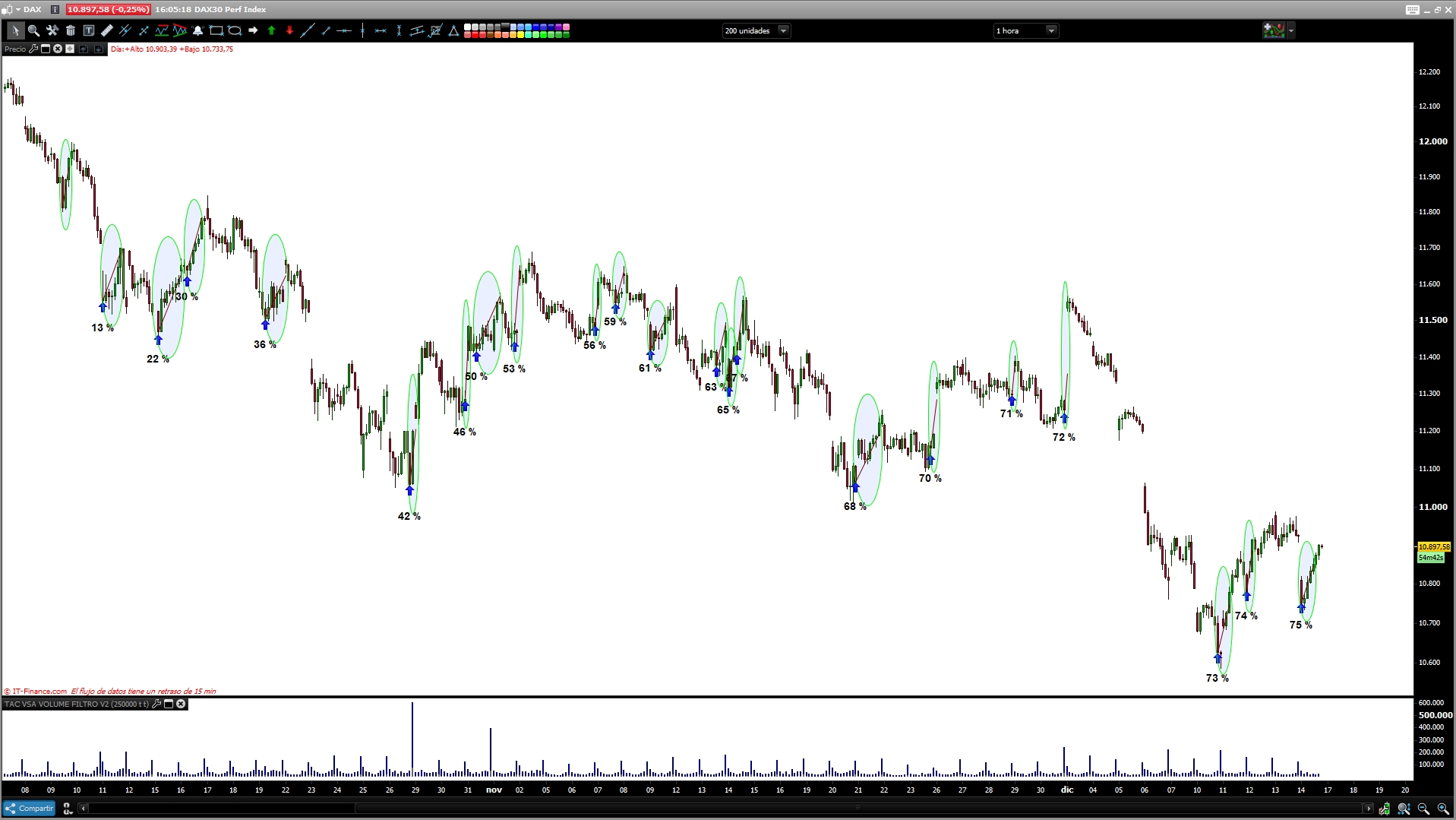I loaded 15min time frame dax, 20000 bars
