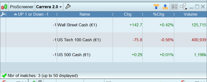 SCREENER[(c1 AND c2 AND c22 AND c3 AND c4 AND c5 AND c6) OR (c7 and c8 and c88 AND c9 and c10 and c11 and c12)] (Variation AS “%Chg prev bar”)