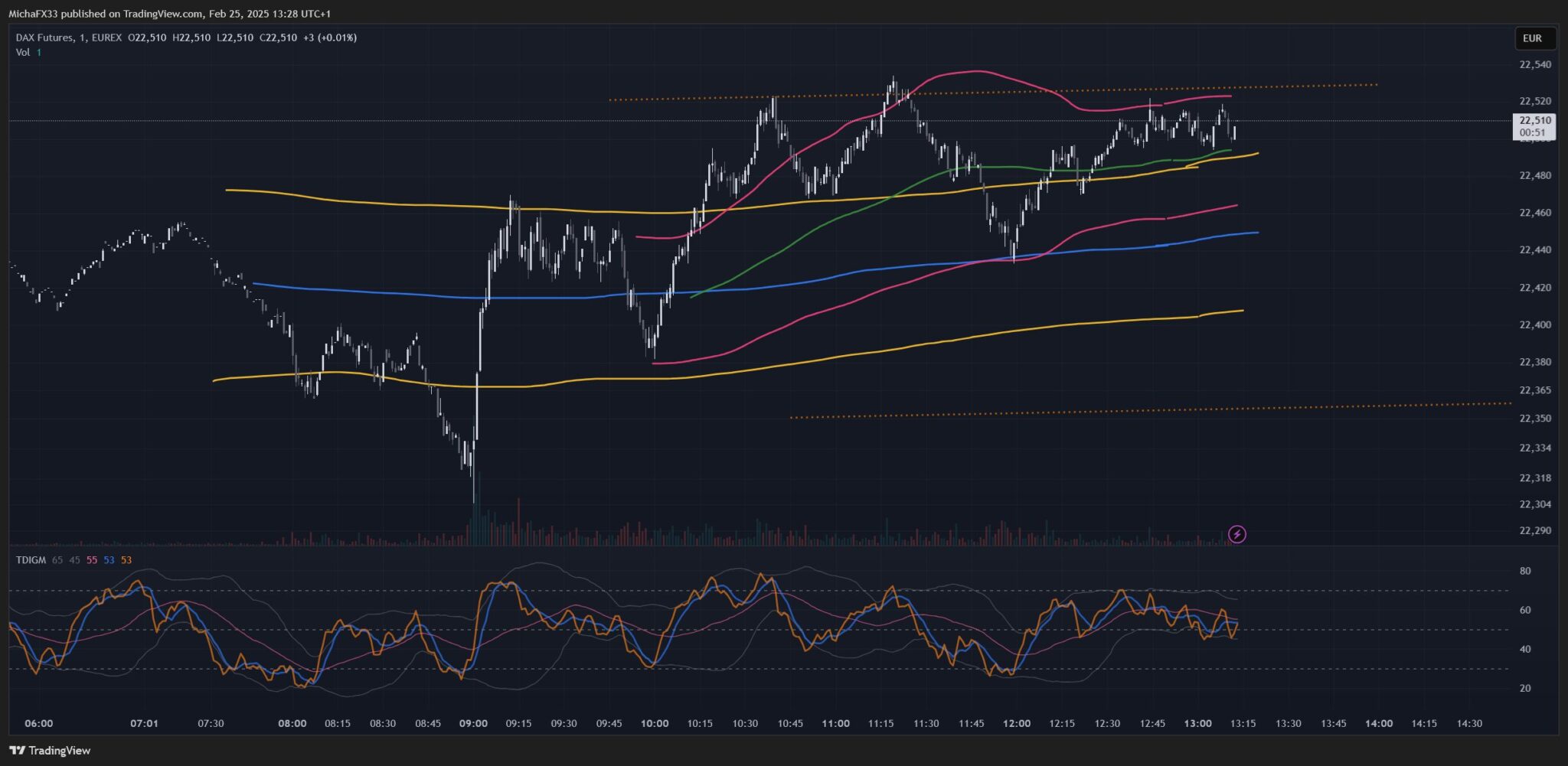 today i would like to presend an interesting indicator, which I use frequently for Furures (5min.,1min.) gaining good result.