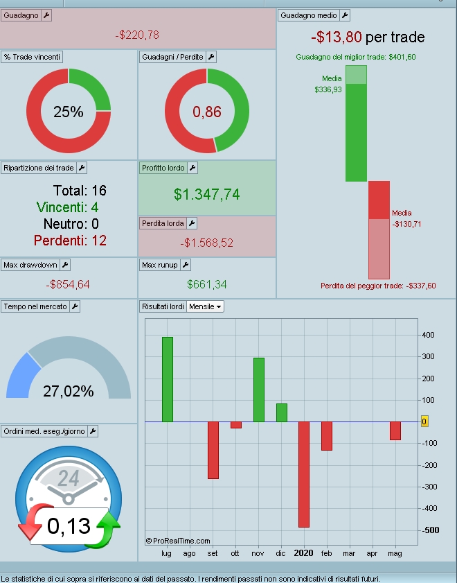 I’ve just seen the new Probacktest window, and in my humble opinion I believe the previous one was far better, more elegant and clear. Also, the ROI percentage was once clearly visible in the upper left area, now this information is no longer displayed, and you need to calculate it manually now.