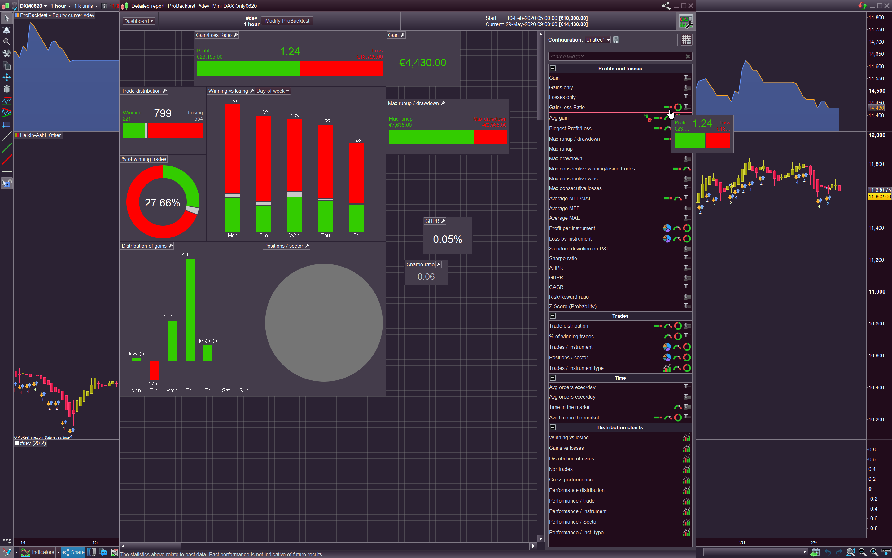 The new ProBacktest window is everything but ugly! It is now far more detailed with extra components and ratio calculation to get more useful information about the strategy.