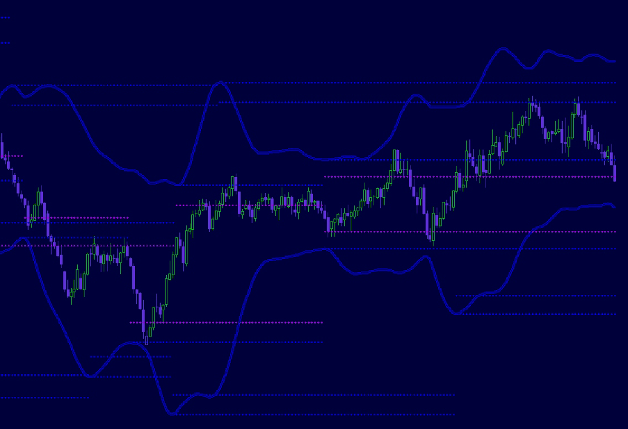 Although the picture reflects a modified bollinger band the principle is still the same. As per the picture you can see that it often identifies areas of support/resistance and may lead to reversal or congestion. In the picture the reason for the pink lines is that if trading action is confined between these it can be considered to be in a trading range, outside of these trending (an arbitary definition).