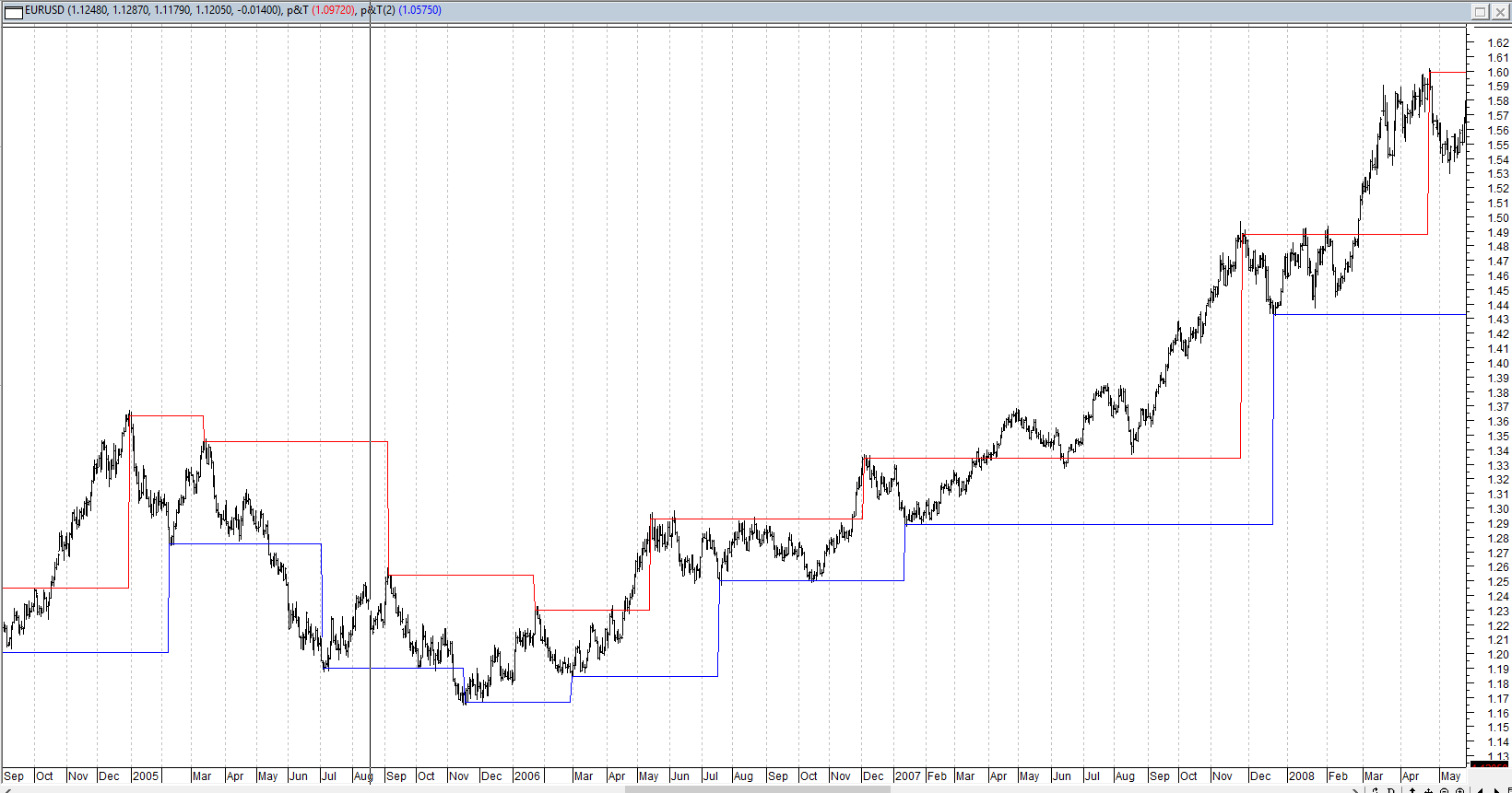 As requested. I have had to import the data from Metatrader, so the dates don’t line up. I hope this will do. The Blue line is Peak and Red Trough