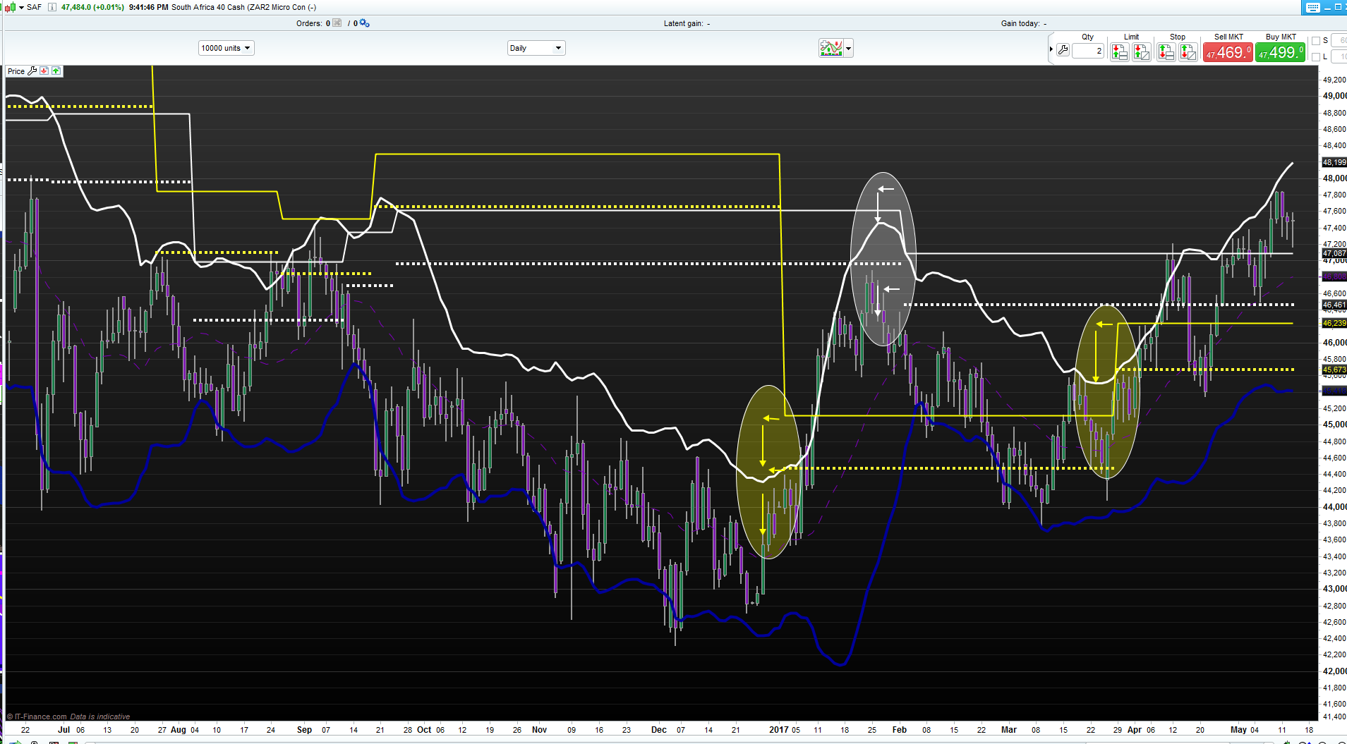 2. Drawn the peak lines in white – main as solid and 1ATR in dotted