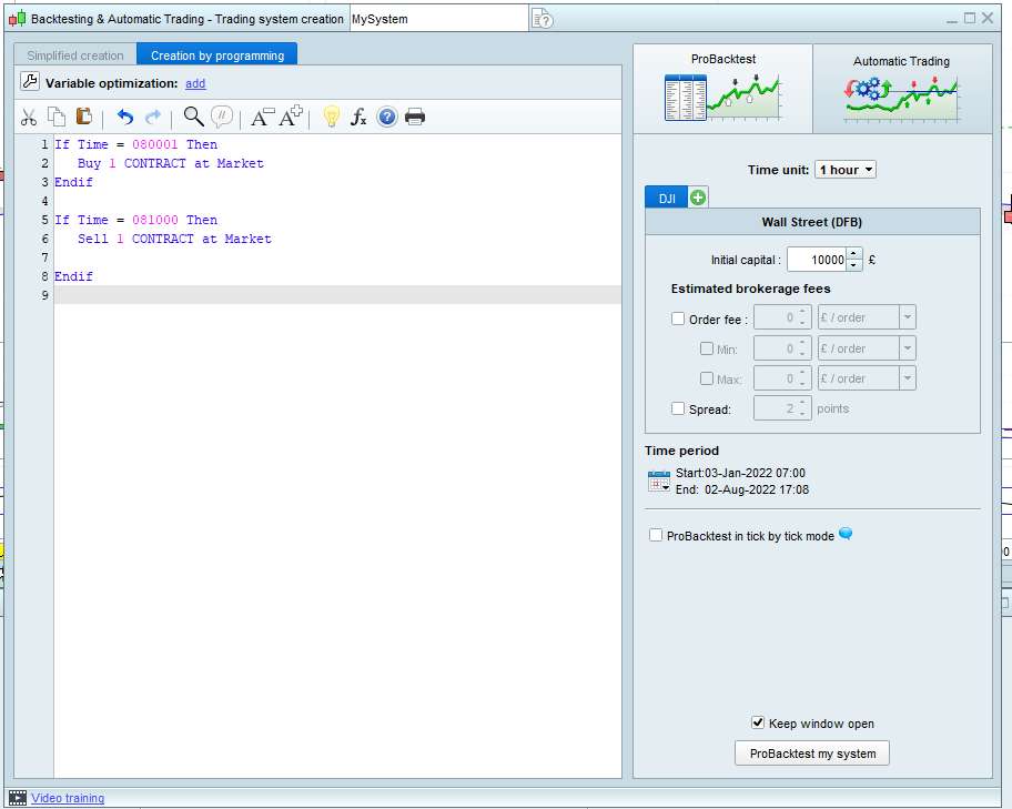 Execute a buy position on the FTSE100 at 8:00am irrespective of the market position.
