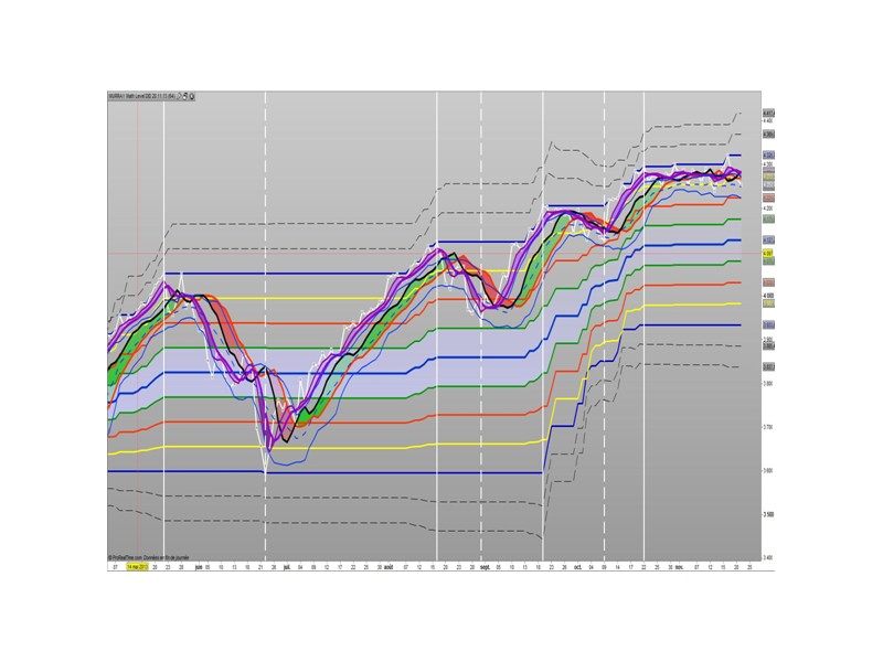 – Líneas 0/8 y 8/8: Indican zona de sobrecompra o sobreventa y por tanto normalmente el precio debería ir a la contra al tocarlas.
