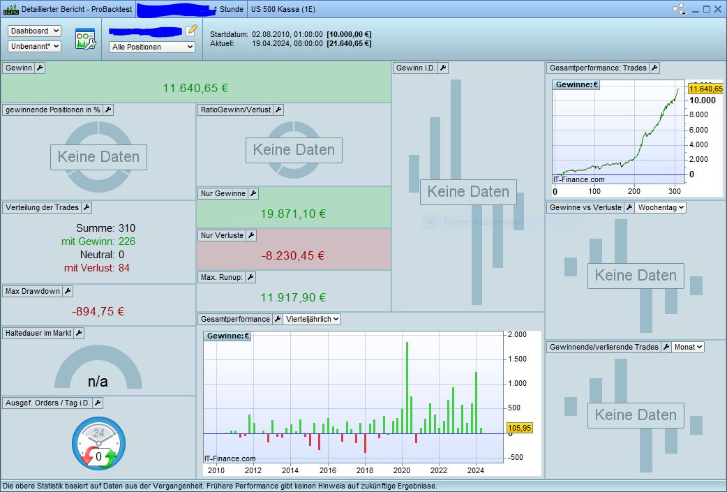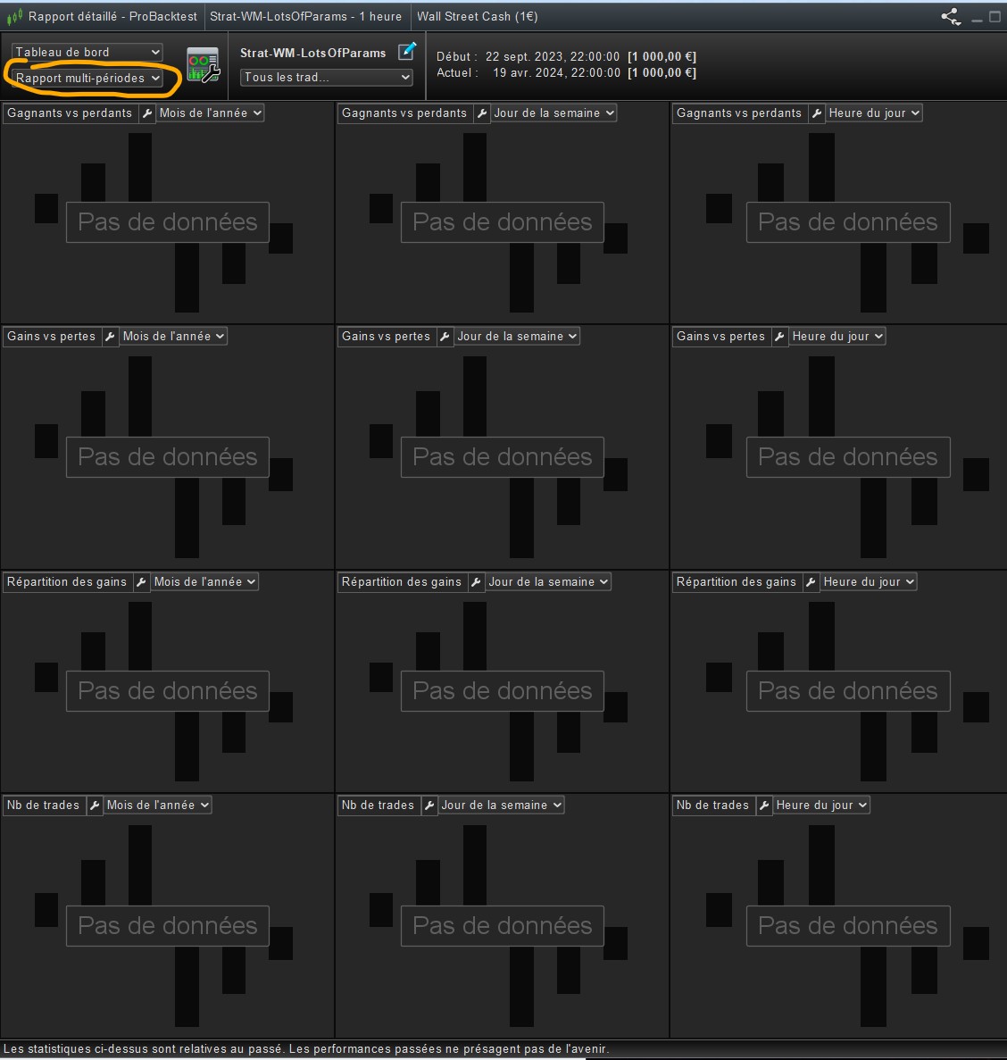 This one is funny too. The standard detailed Backtest report has all the categories filled. But when I switch to the multi-period version not one of the categories is filled. I can switch back and forth as many times as I can, one of them stays filled, and the other one stays empty. Fun with reports so to say. By the way – the export to pdf of the empty one is empty also, very consistent.