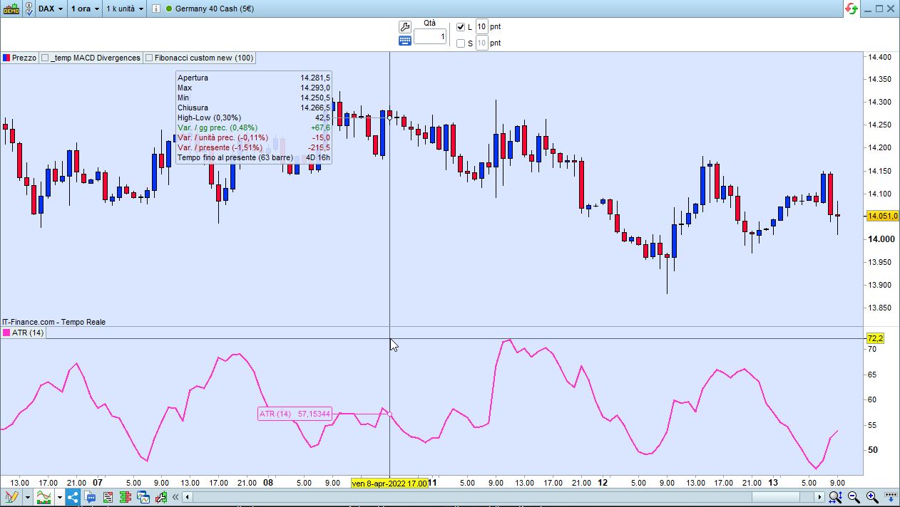 By plotting “GRAPH PREZZOUSCITA” I can see when the trail starts, but I want to see the actual ATR values