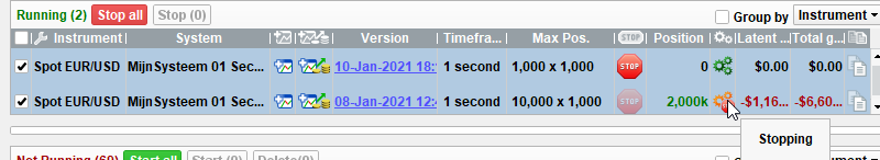 Monobrow, your question is very legit. For example, what about your currently running system on Forex right now (before opening), you providing a new system made this weekend, and you can’t even cancel the old one, but you can initiate the new one. I suppose this will end up fine … or not when you think you can’t cancel the old one and thus omit that.