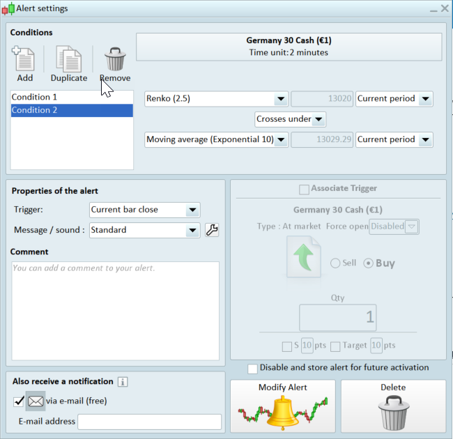 I am using Renko charts.. But i want to know is there anyway to get push notifications when renko changes block colour or cross a moving average? I want notifications send to my phone.