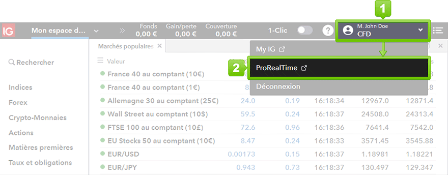 Comment démarrer ProRealTime depuis la nouvelle interface Web d’IG ?